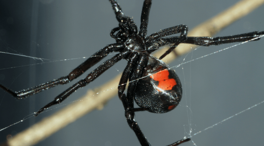 Appearance: Shiny black with a red hourglass marking on the underside of the abdomen.