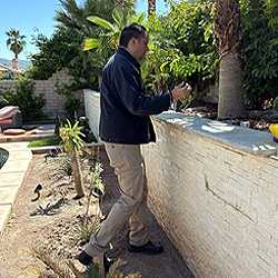 Male Pest Control Specialist Applying a Chemical Treatment Outside