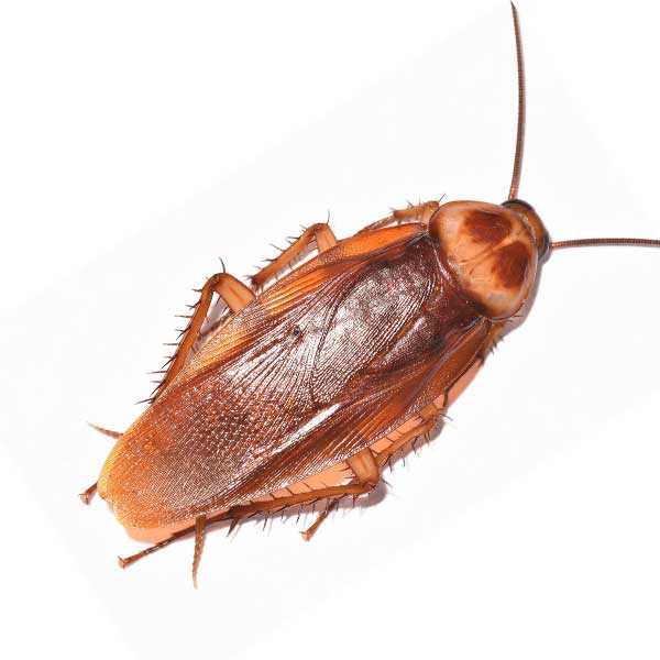 American cockroaches are the largest cockroach species in the United States, with adults growing up to 1½”. Their color will range from red to brown, and they have a distinctive light brown band around the head. Unlike the German cockroach, the American roach will regularly use its wings to fly. Adult American cockroaches may live up to around 15 months. Females will deposit their egg cases in a sheltered area, or usually near the ground level (preferably near a food source).